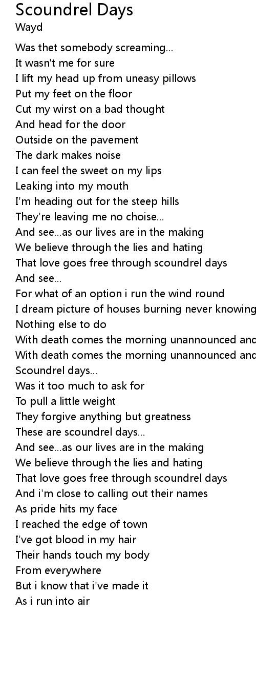 | That love goes free through scoundrel days | |