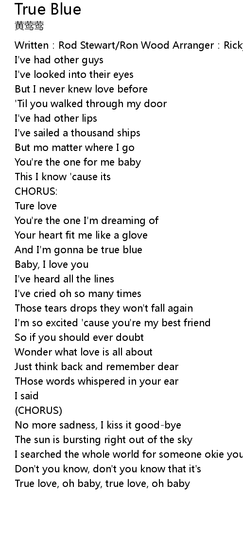 | And I' m gonna be true blue | |