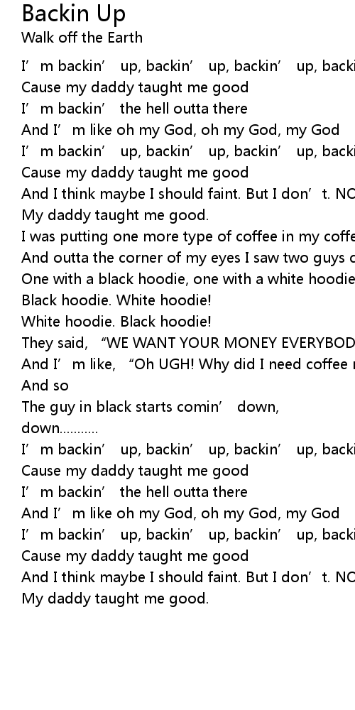 | I’m backin’ up, backin’ up, backin’ up, backin’ up | |