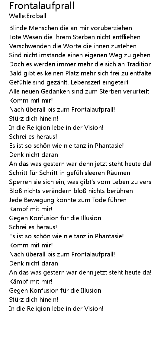 | Gefühle sind gezählt, Lebenszeit eingeteilt | |
