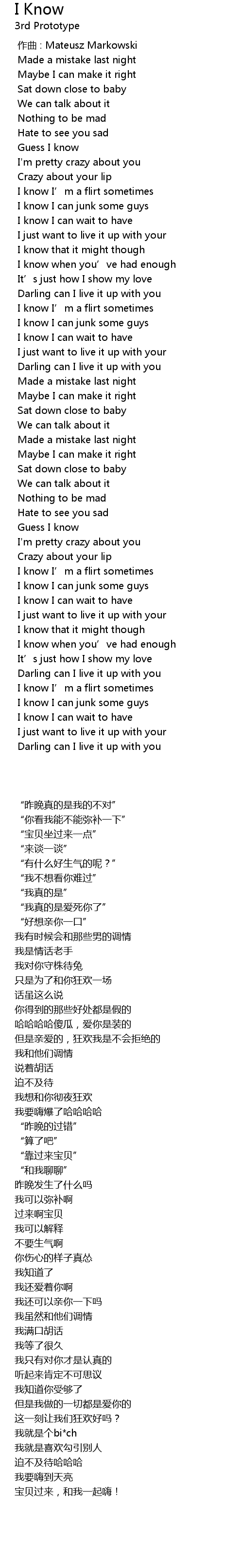 | 歌曲 | I Know |