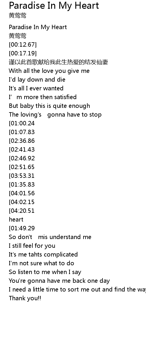 | [04:31.80][04:20.51][04:05.79][03:09.41][01:42.49] | I know it' s paradise in my heart |