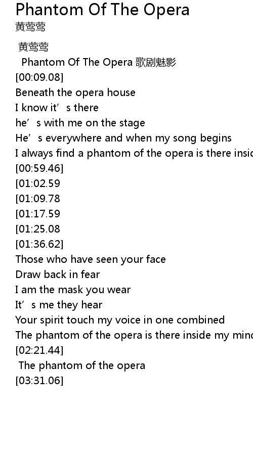 | [03:11.00] | The phantom of the opera |