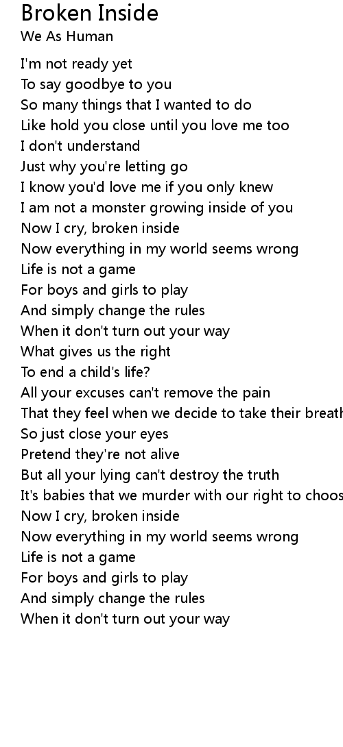Now I cry, broken inside |