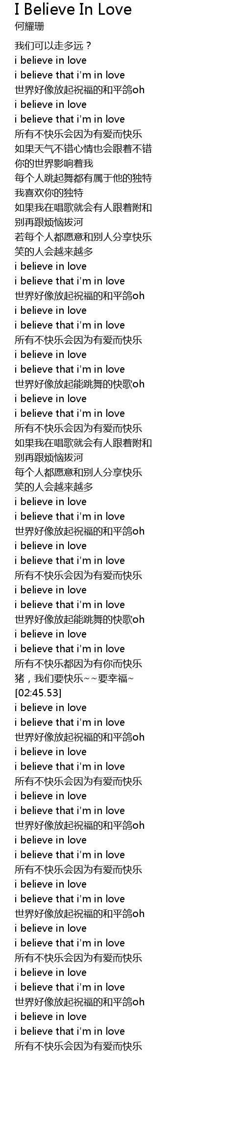 | [02:23.85] | i believe that i' m in love |