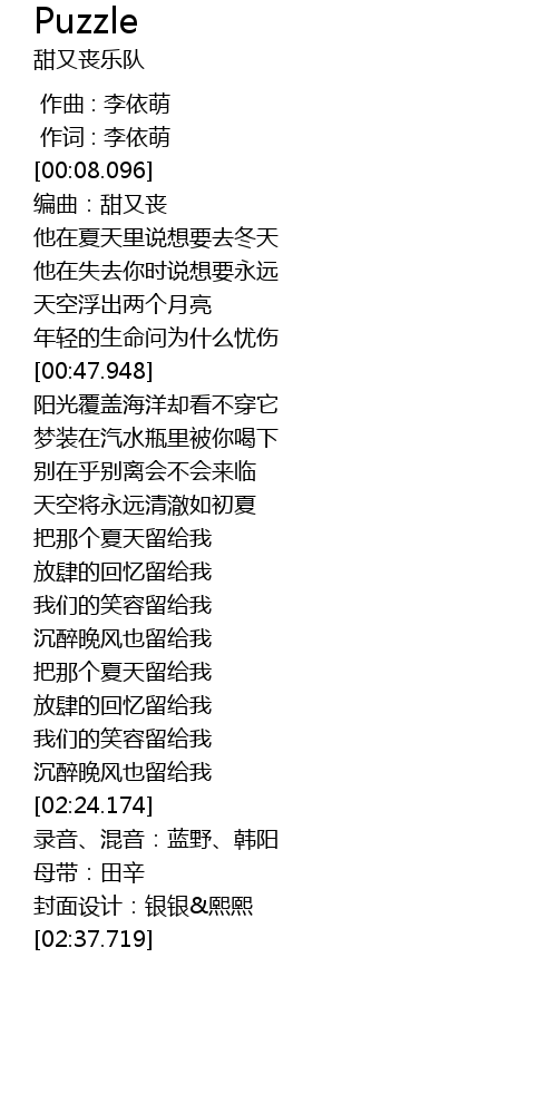 | [00:12.909] | 编曲:甜又丧 |