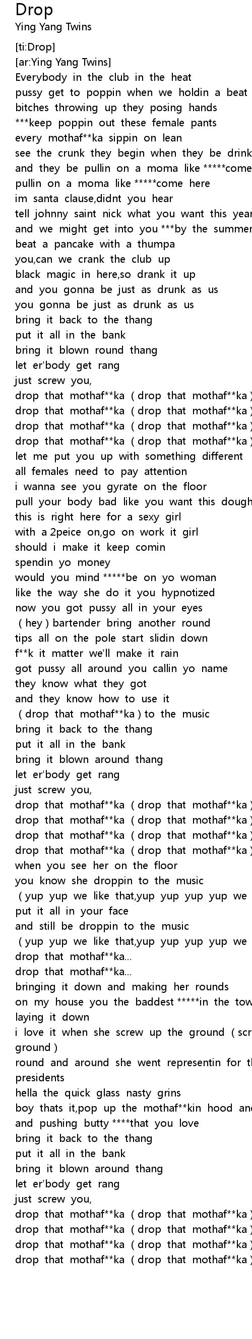 | [02:09.11] | drop that mothaf**ka (drop that mothaf**ka) |