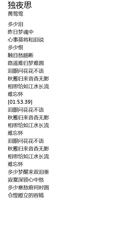 | [01:36.14] | xiāng sī qià rú jiāng shuǐ cháng liú |