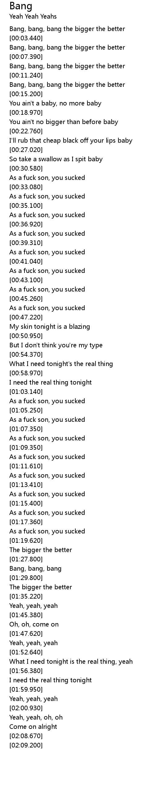 Bang, bang, bang the bigger the better |