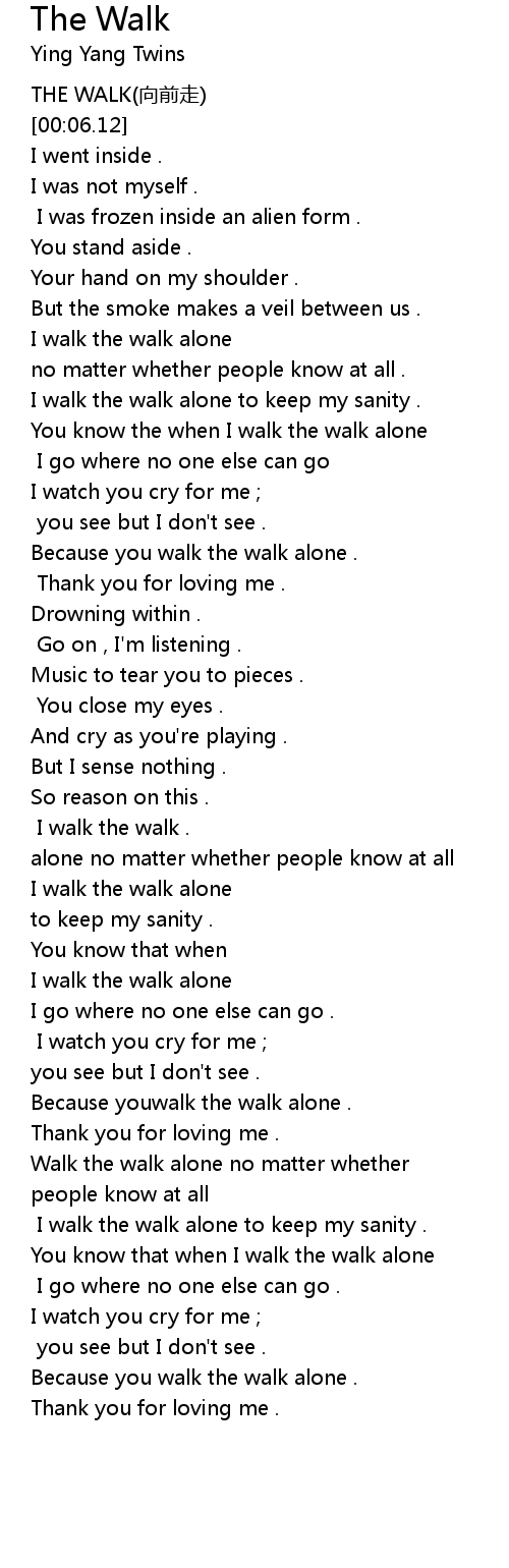 | [02:42.88] | I walk the walk alone to keep my sanity . |