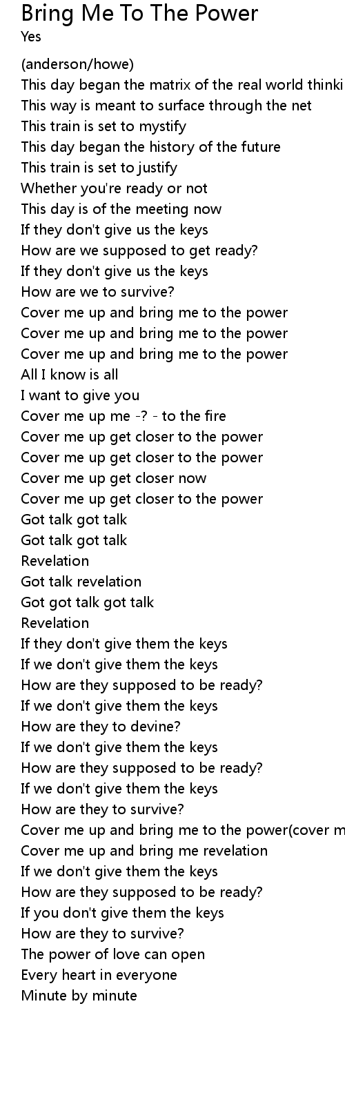 | Cover me up and bring me to the power(cover me up get closer to the power) | |