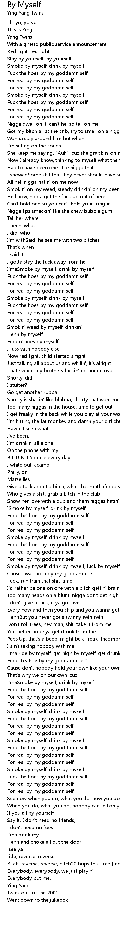 For real by my goddamn self |