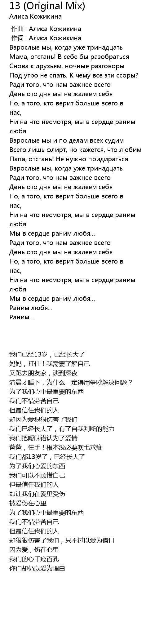 | [00:01.000] | 作词 : Алиса Кожикина |