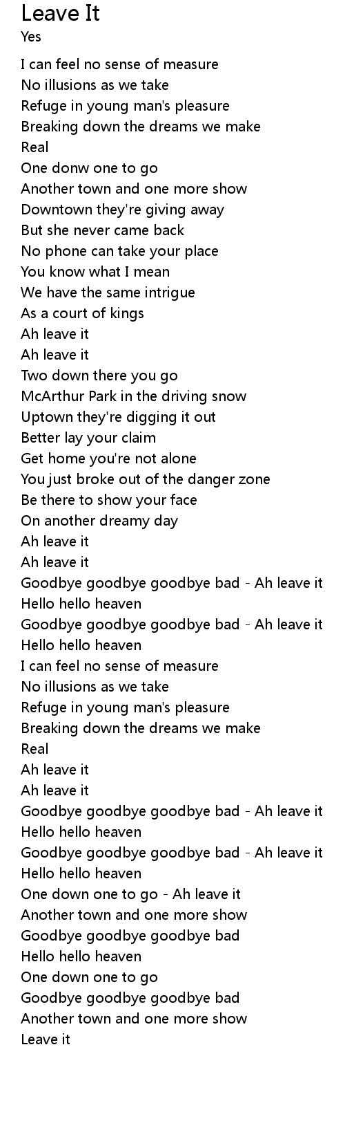 | Goodbye goodbye goodbye bad - Ah leave it | |