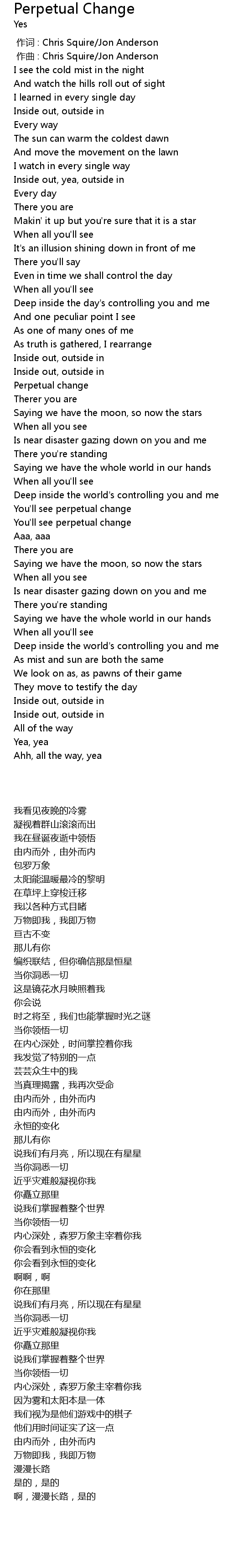 | [00:00.000] | 作词 : Chris Squire/Jon Anderson |