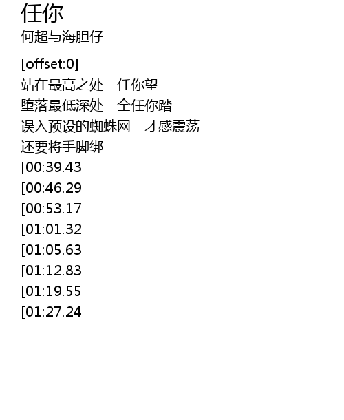 | [01:39.62][00:39.43] | *屹立最危险之处 任法落 |