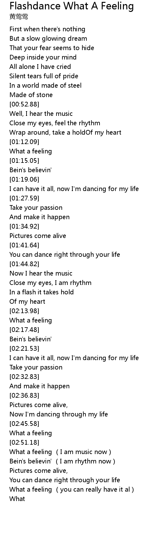 | [02:22.68] | I can have it all, now I' m dancing for my life |