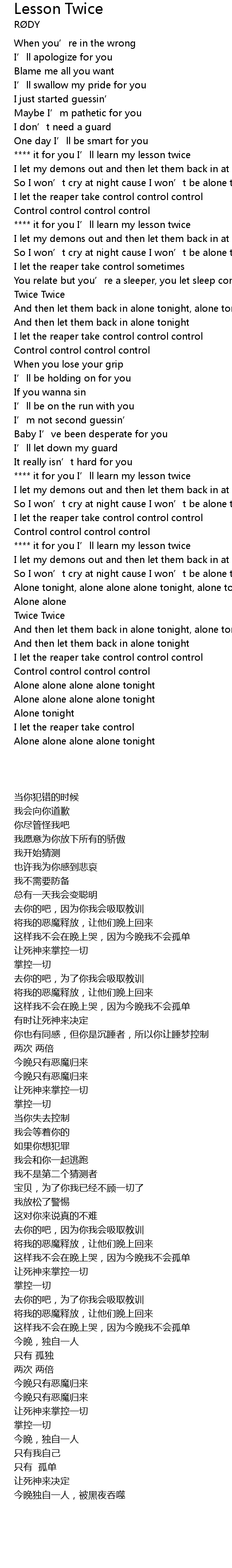| [02:47.19] | Alone alone alone alone tonight |