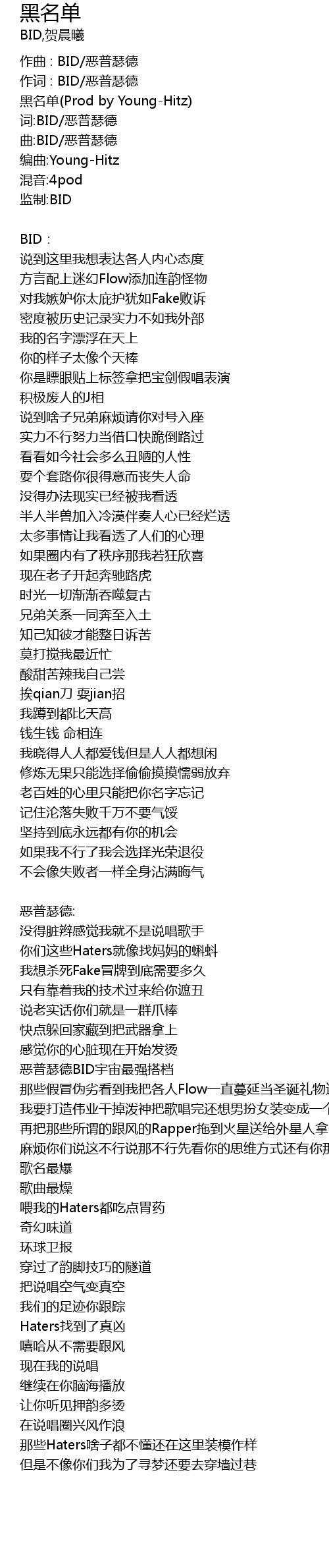 | 作词 : BID/恶普瑟德 | |