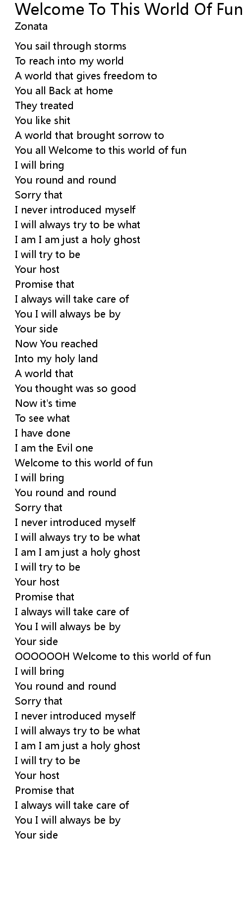 Welcome to this world of fun |