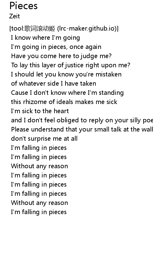 | [03:00.928] | I'm falling in pieces |