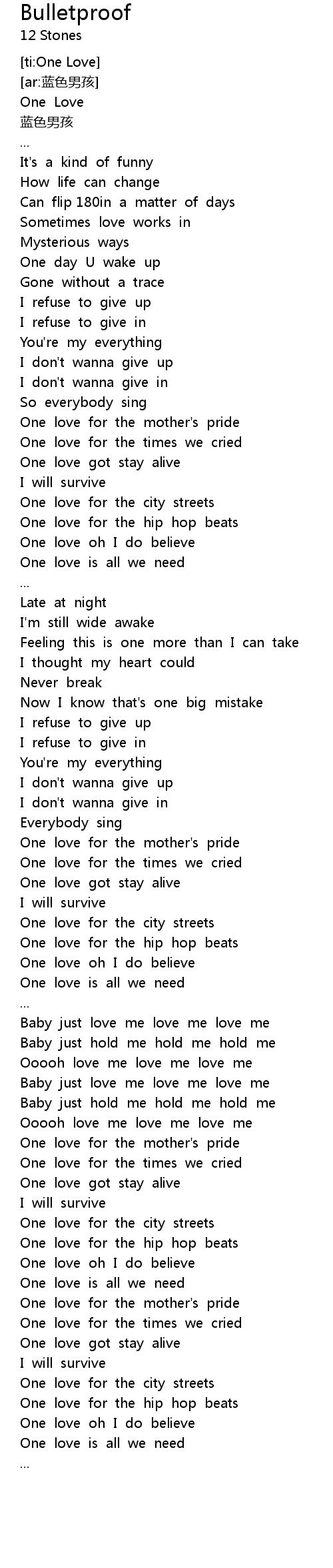 | [02:56.978] | One love got stay alive |