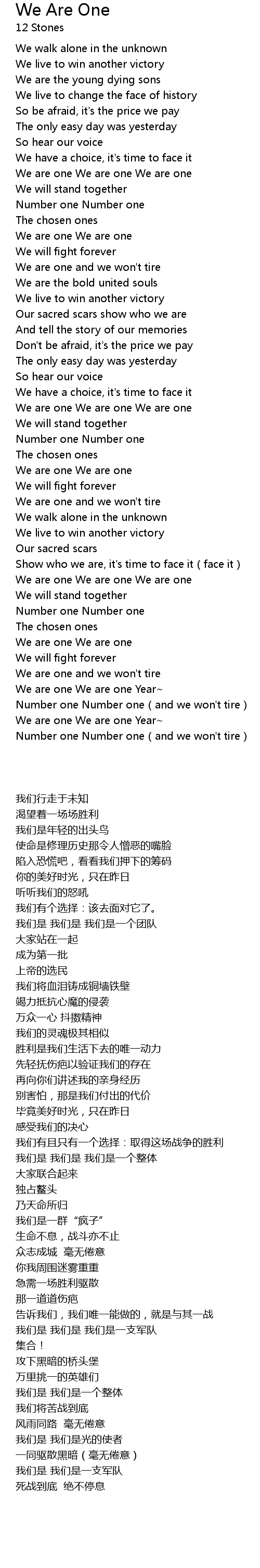 | [00:45.38] | We are one We are one We are one |