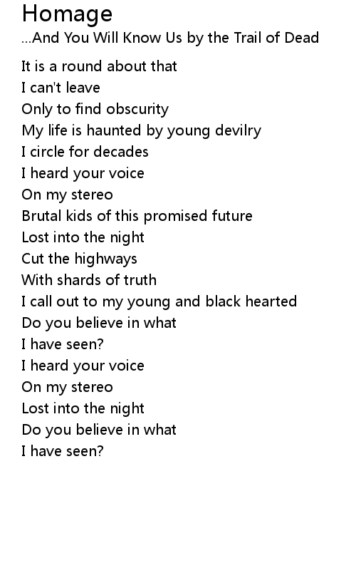| 歌手 | ...And You Will Know Us by the Trail of Dead |