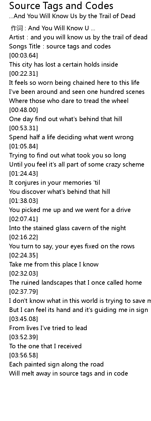 | [00:02.81] | Songs Title:source tags and codes |