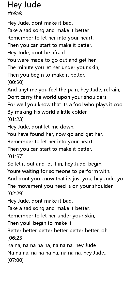 And dont you know that its just you, hey Jude, youll do, |