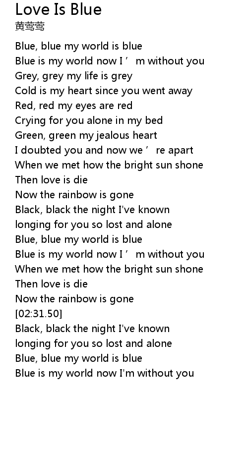 | [02:21.52] | Blue is my world now I'm without you |