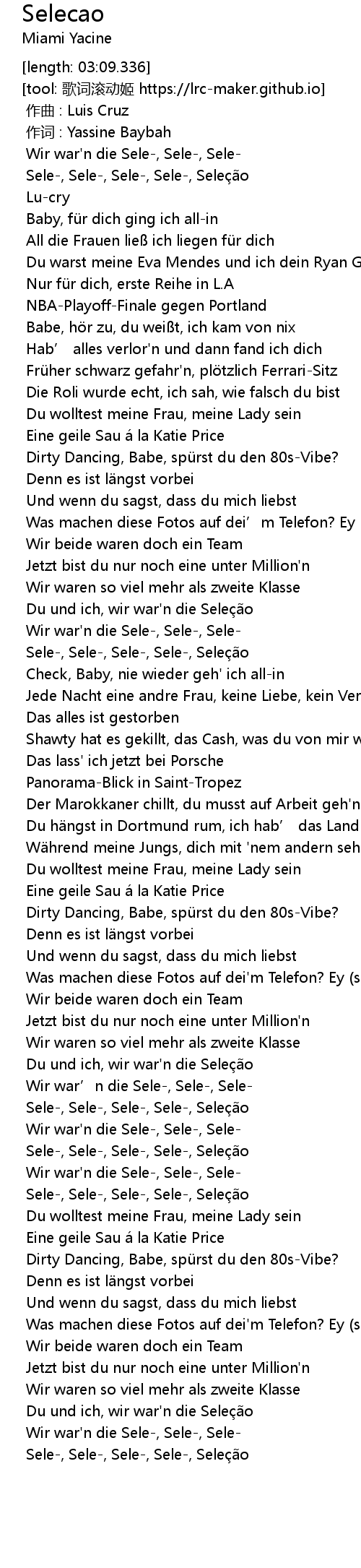 | [02:04.827] | Du und ich, wir war'n die Seleção |