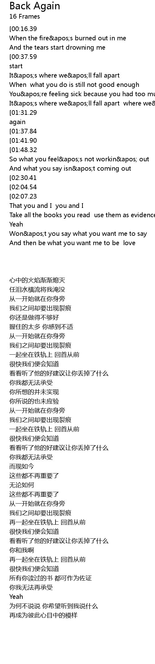 | [00:02.93][00:16.39][00:33.21][01:04.16][01:09.78][01:15.56][01:36.84][01:47.63][01:53.24][01:55.80][02:01.80][02:06.54][02:11.78][02:51.95][03:02.44][03:13.97][03:21.71][03:28.95][03:34.64] |