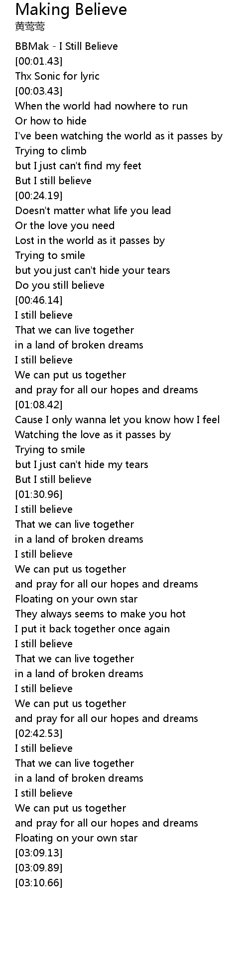 I still believe |