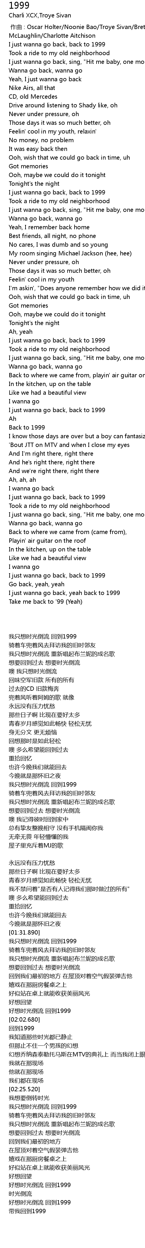 | [01:33.360] | 我只想时光倒流 回到1999 |