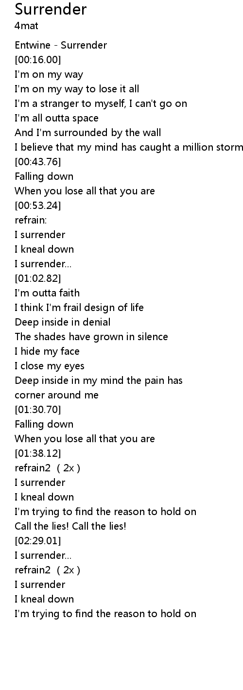 | [00:25.78] | I'm a stranger to myself, I can't go on |