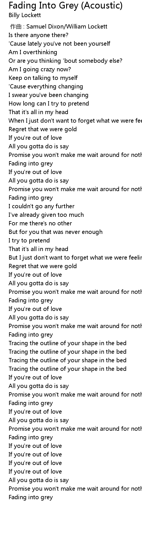 | 歌曲 | Fading Into Grey (Acoustic) |