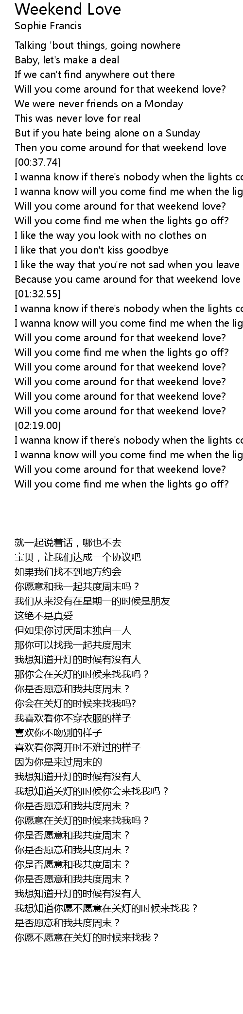 Will you come around for that weekend love? |