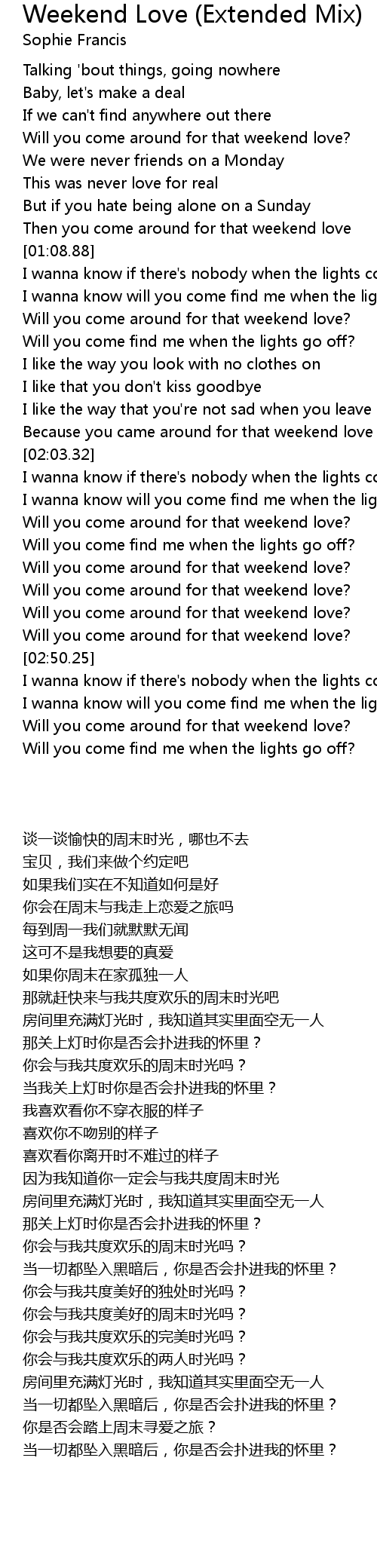 Then you come around for that weekend love |