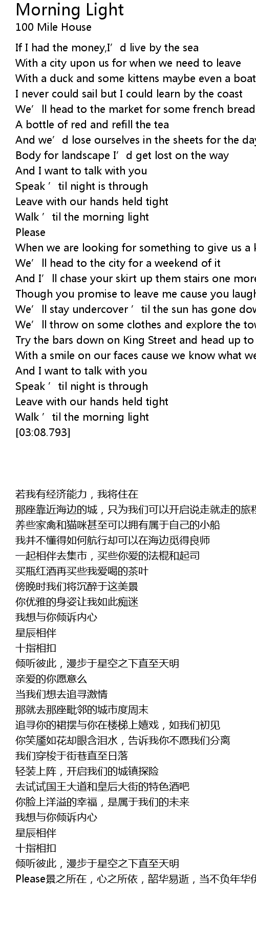 | [01:29.037] | Walk ' til the morning light |
