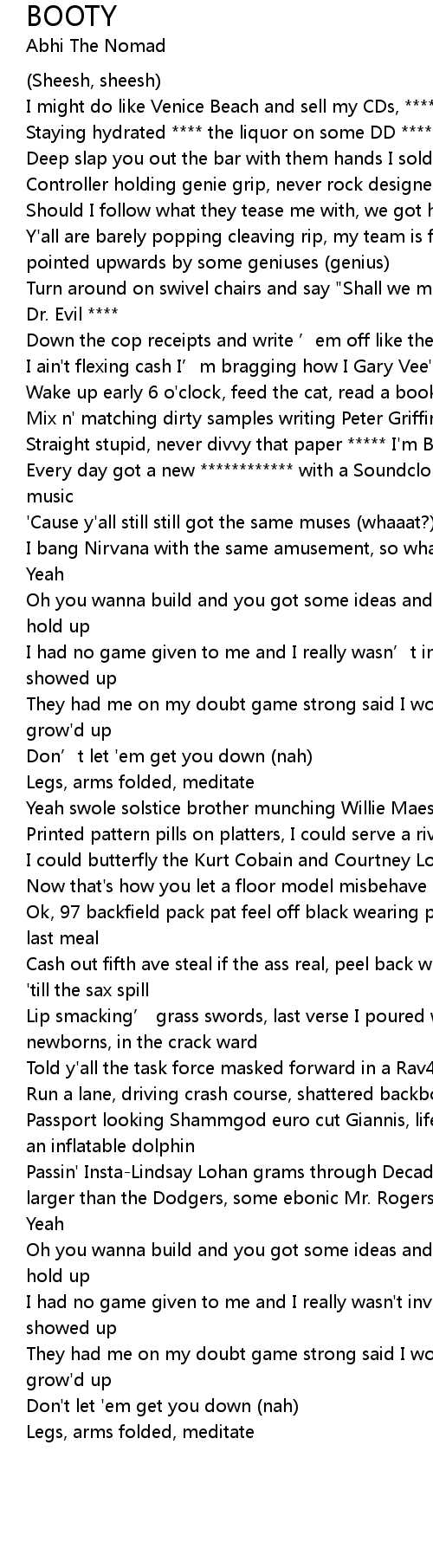 | [00:06.40] | Staying hydrated **** the liquor on some DD **** |
