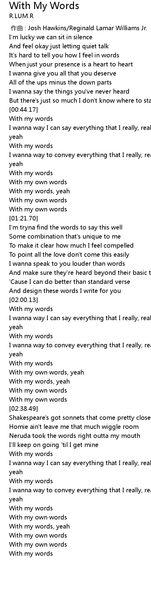 | [00:44.92] | With my words |