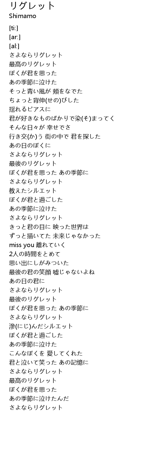 | [01:45.09] | さよならリグレット |