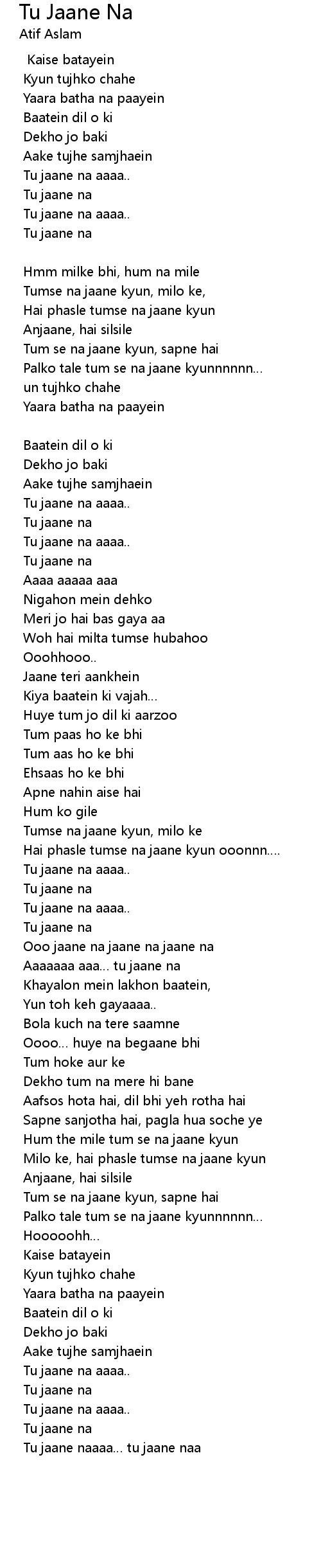 | Tu jaane naaaa tu jaane naa |