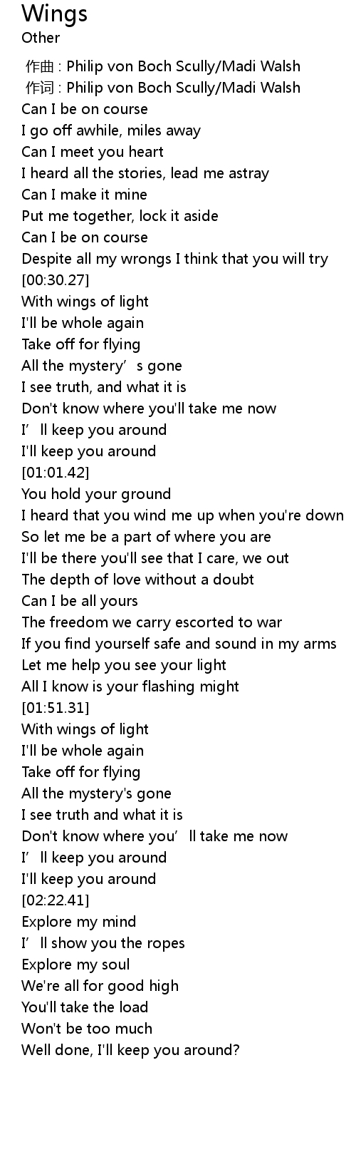 | [00:31.12] | With wings of light |