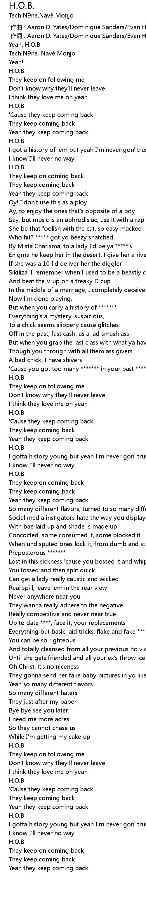 | 歌曲 | H.O.B. |