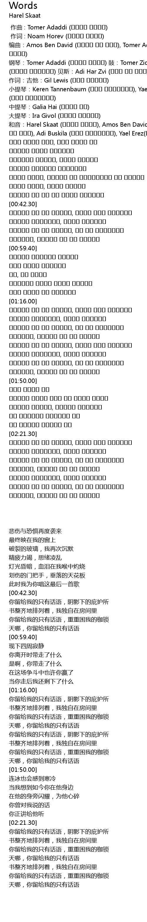 | [01:46.10] | אלוהים, השארת לי רק מילים |