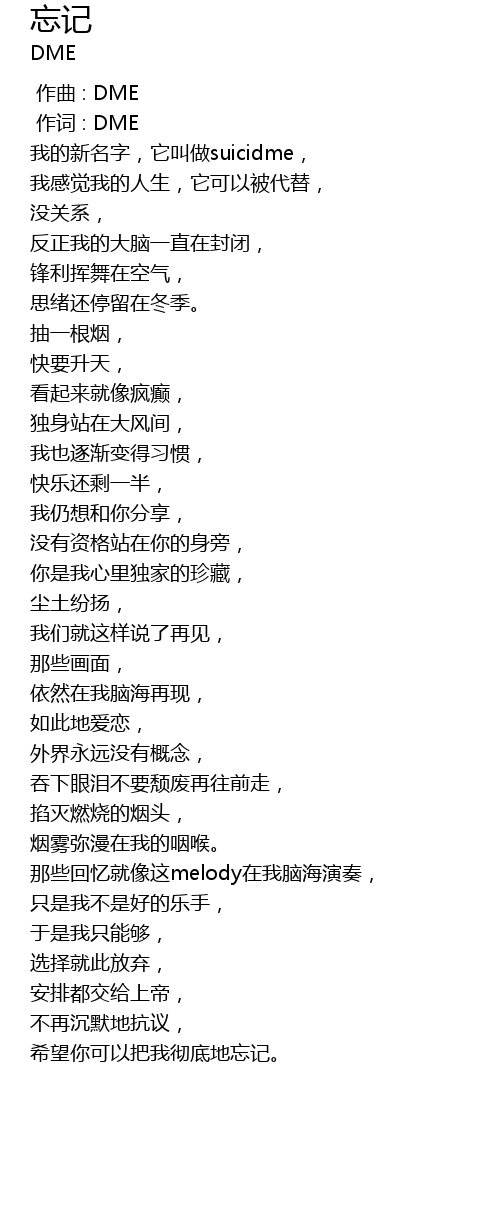 | [00:30.595] | wo de xin ming zi, ta jiao zuo suicidme, |