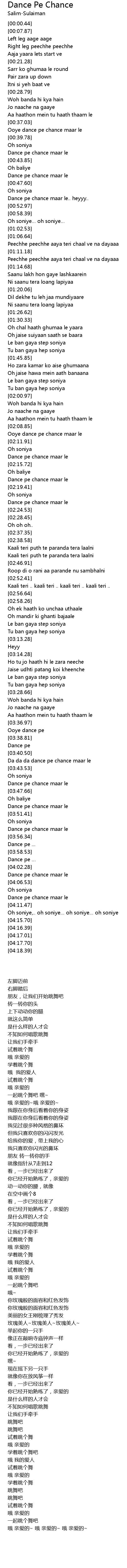 | [00:49.03] | Dance pe chance maar le.. heyyy.. |