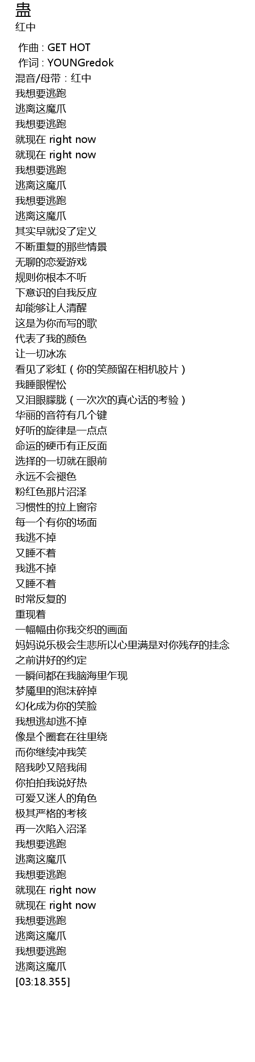 | [03:00.845] | 我想要逃跑 |